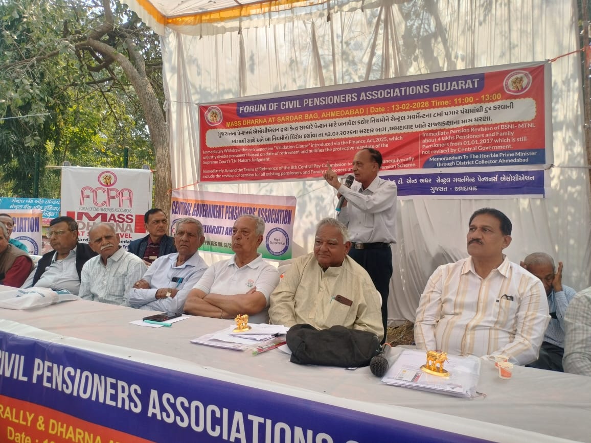 - Forum of Civilian Pensioners Association protests In a strong show of protest against recent pension policy changes, members of the Forum of Civilian Pensioners Association staged a massive dharna at Sardar Baug in Ahmedabad on Friday, demanding the inclusion of BSNL and Central Government pensioners under the proposed 8th Pay Commission and opposing provisions of the Finance Bill 2025.