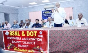 IT WAS HELD ON 18TH DECEMBER, 2025 IN FIELD MARSHAL WADI, RAJKOT AT 10.00 HOURS. IT WAS ADDRESSED BY M.R. VASHISHT, A.N. PATEL, D.D. MISTRY, J.C. MANDALIA, SHANTILAL KANTESARIA AND MANY DIGNATORIES PRESENT IN THE HALL.  MAIN STRESS OF THEIR SAY WAS DELAY IN PENSION REVISION OF BSNL RETIREES WHICH IS DUE FROM 01.01.2017. THE REASONS FOR DELAY WERE EXPLAINED IN DETAIL.